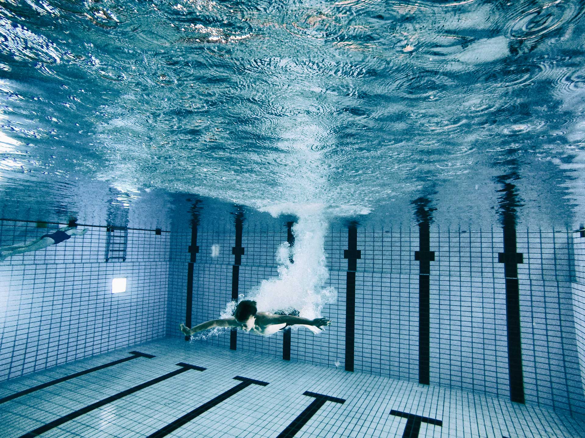 25 meter bassinet byder på en 3 meter vippe, en 1 meter vippe og en 3 meter lang rutschebane. Temperaturen er 27,5 grader.